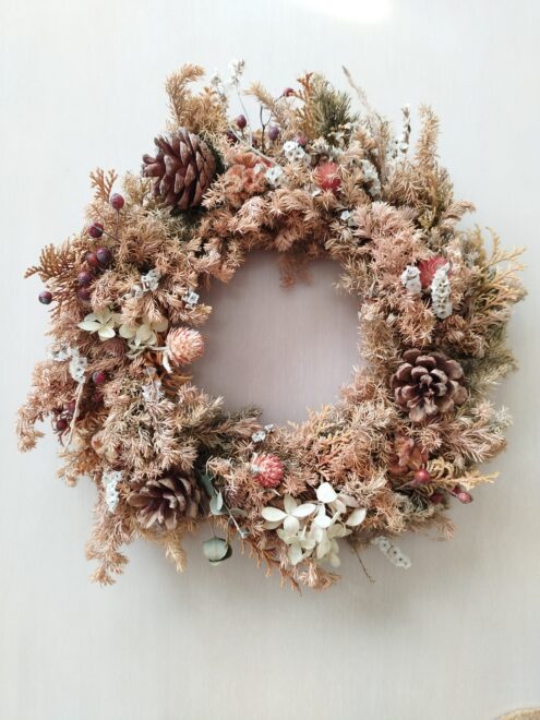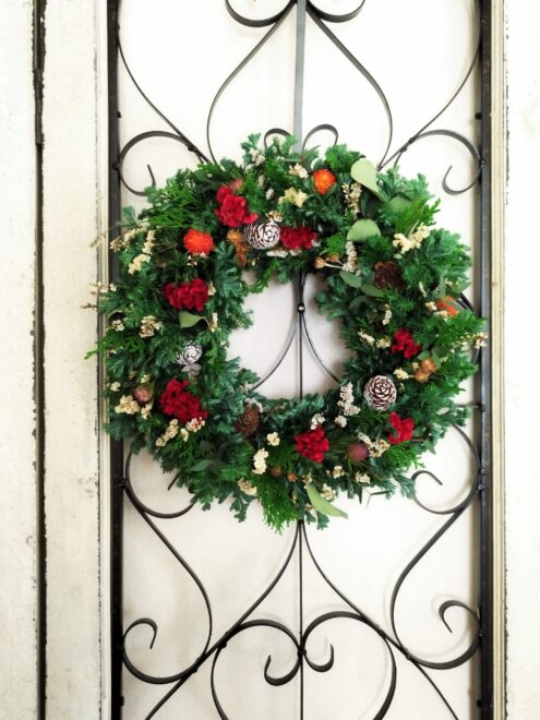 しかしながら日本ではしめ縄と違い、冬のお部屋を飾るインテリア的な要素が強いですよね。私の生徒様でも、冬だけと言わず春まで夏までお飾りくださる方もいらっしゃいます。