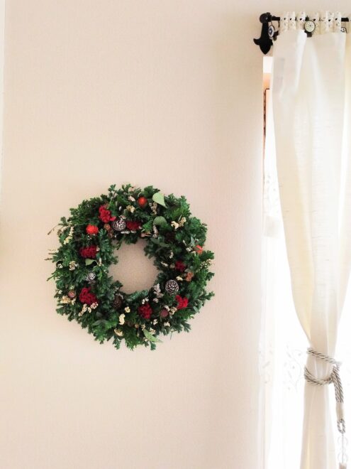 当時の私の感覚では、クリスマスリースは日本のしめ縄のようなイメージでした。クリスマスリースは、11月24日から1月7日まで飾るそうです(国や地域、宗教により異なる)。