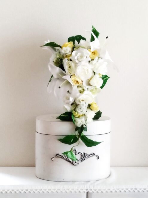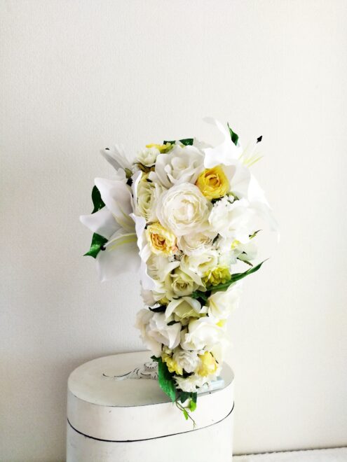 花菜Junのアーティフィシャルフラワー・ウェディングブーケは、流行りのクラッチブーケだけではなく、伝統的なラウンドブーケ、キャスケードブーケ、ドロップブーケ、可愛らしいボールブーケ、大胆なスワッグ型ブーケなども承っております。