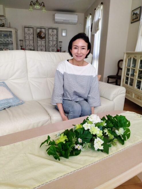 完成お写真です。テーブルピースが素敵と言うよりも、生徒様のNさんが素敵~♪