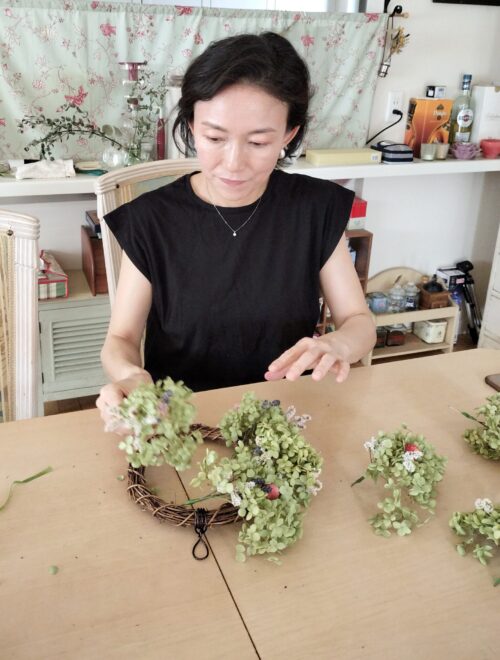 8月1日、8月のレッスンスタートです。アナベルリースのレッスンは、7月終わりから始まりましたので、気分は既に中盤ですが、1日です。