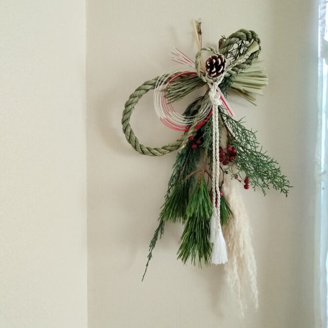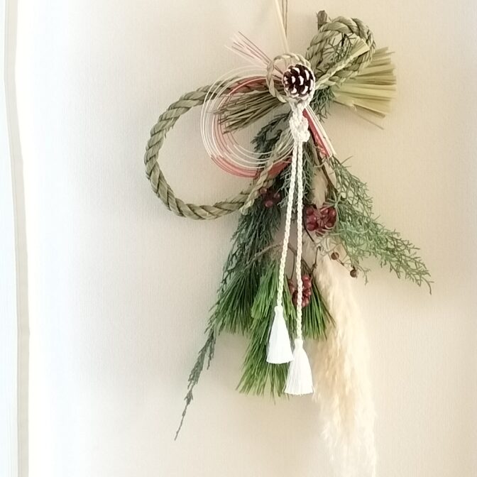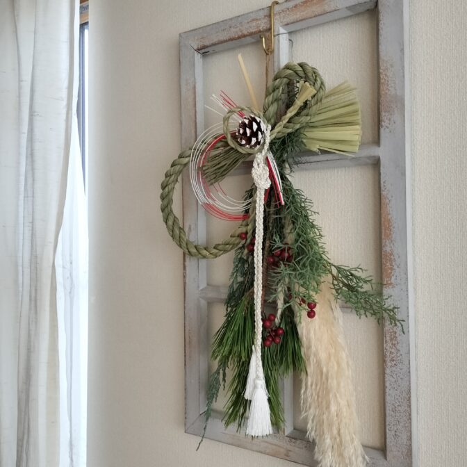 天然素材のしめ縄飾りです。新年に神様を迎えるしめ縄飾り…神聖な気持ちで心を込めて作りました。